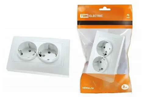 Двойная розетка Valdai от бренда TDM – надежное решение для безопасного использования бытовой техники: • Защитные шторки предотвращают случайные контакты; • Степень защиты IP20 обеспечивает безопасность эксплуатации; • Номинальный ток 16 А подходит для мощных устройств; • Компактность и современный дизайн впишутся в любой интерьер; • Идеальна для установки в жилых помещениях, офисах, гостиницах. Комплект поставляется в промупаковке, что удобно при оптовых закупках и транспортировке.