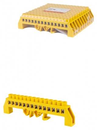 Шины "РЕ" "земля" в жёлтом изоляторе предназначены для установки на стандартную DIN-рейку шириной 8 мм и глубиной 12 мм. Изделие имеет 14 контактных групп и выполнено из качественных материалов, что обеспечивает надежность соединения и долговечность эксплуатации. Эта модель идеально подходит для использования в распределительных щитах и шкафах управления благодаря своей компактности и удобству монтажа.